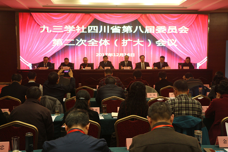 12月16日,九三學社四川省第八屆委員會第二次(擴大)會議在成都召開。會議深入學習貫徹中國共產黨第十九次全國代表大會精神,傳達貫徹九三學社第十一次全國代表大會精神,學習貫徹中國共產黨四川省第十一屆二次全體會議精神,聽取并審議九三學社四川省第八屆常務委員會2017年工作報告并通過相關決議。會上還舉辦了科學報告會,并對社務工作先進集體和個人進行了表彰。九三學社中央副主席、四川省委主委黃潤秋出席會議,并代表社省委第八屆常務委員會做工作報告。