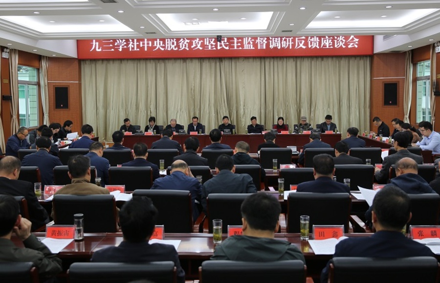 魏增軍代表中共陜西省委省政府就九三學社中央對陜西省脫貧攻堅工作給予的大力支持表示感謝,陜西省將積極主動配合九三學社中央開展民主監督,真正使民主監督的成效得以最大限度的發揮。下一步陜西省將繼續學習貫徹好習總書記中央論述,堅決落實黨中央、國務院的決策部署,深入實施攻堅三年行動,切實把提出的意見轉化為改進作風、推動工作、加快發展的實際行動,以馳而不息的韌勁推進全省脫貧攻堅工作有序有效開展。會上,陜西省、安康市、紫陽縣分別介紹了脫貧攻堅工作及九三學社中央反饋問題整改情況。九三學社四川省委專職副主委、省政協副秘書長沈光明代表調研組反饋了赴紫陽開展脫貧攻堅民主監督情況。