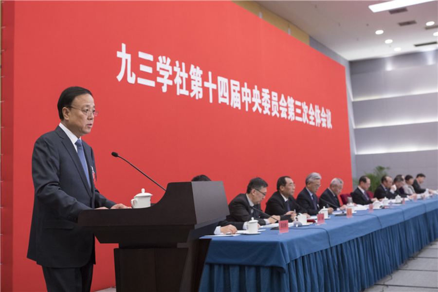九三學社第十四屆中央委員會第三次全體會議12月12日在北京開幕。會議的主要任務是,學習貫徹習近平新時代中國特色社會主義思想和中共十九屆四中全會精神,聽取和審議九三學社第十四屆中央常務委員會2019年工作報告、中央委員會監督委員會2019年工作報告并通過相關決議。九三學社中央主席武維華代表九三學社第十四屆中央常務委員會作工作報告,九三學社中央常務副主席邵鴻主持開幕會,副主席張桃林、賴明、叢斌、趙雯、盧柯、印紅、黃潤秋、劉忠范出席會議。九三學社中央原主席韓啟德、原常務副主席陳抗甫出席開幕會。