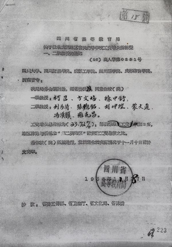 1956年四川省高等教育局的通知(四川大學檔案館藏)