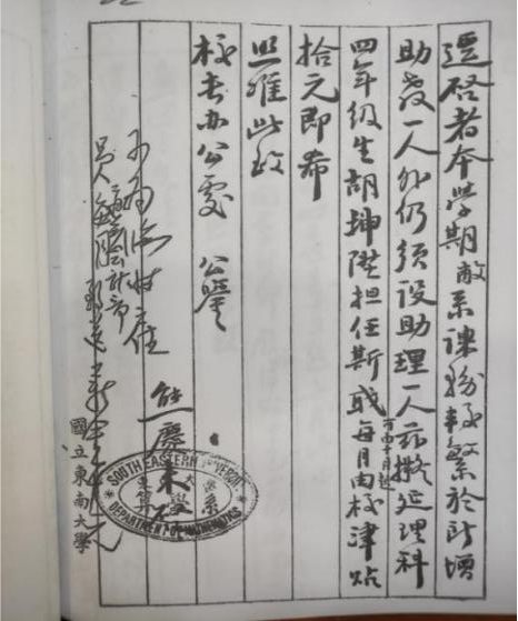 國立東南大學時期,熊慶來申請胡坤陞擔任助理的信函