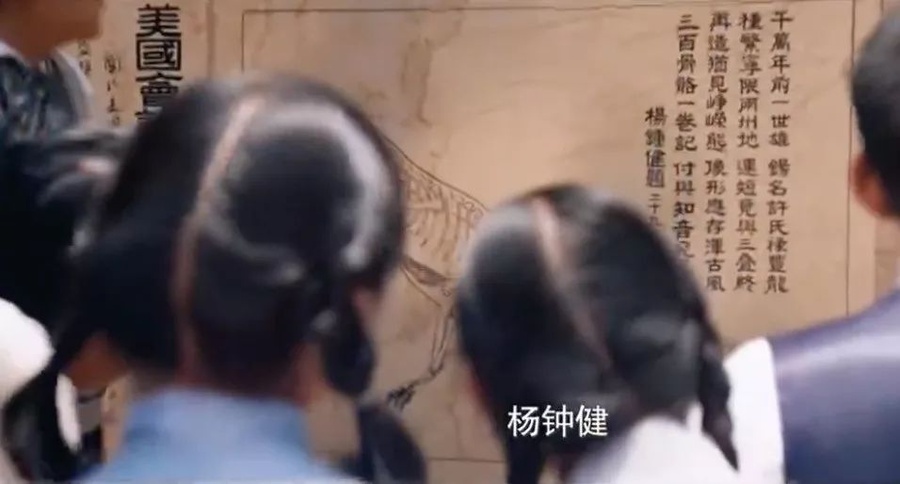 這是電影《無問西東》的截屏,畫面里那個站在恐龍面前的人、那個把恐龍帶回西南聯大的人,就是楊鐘健教授。